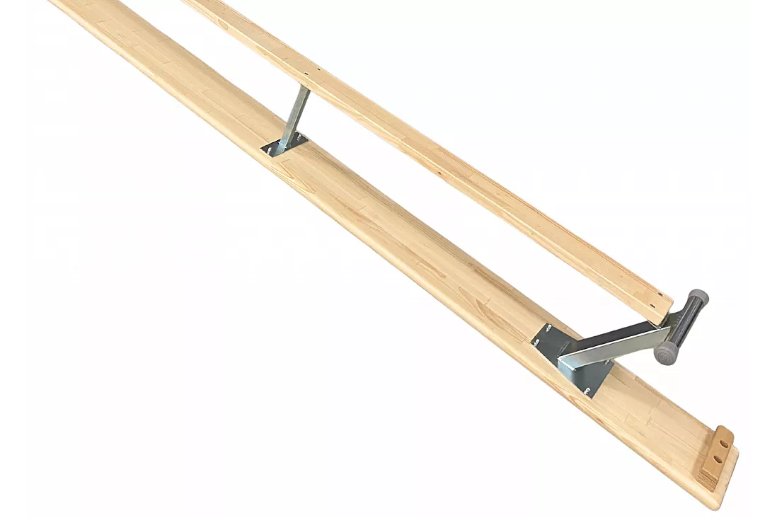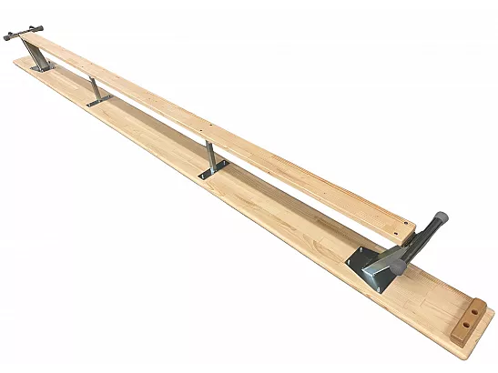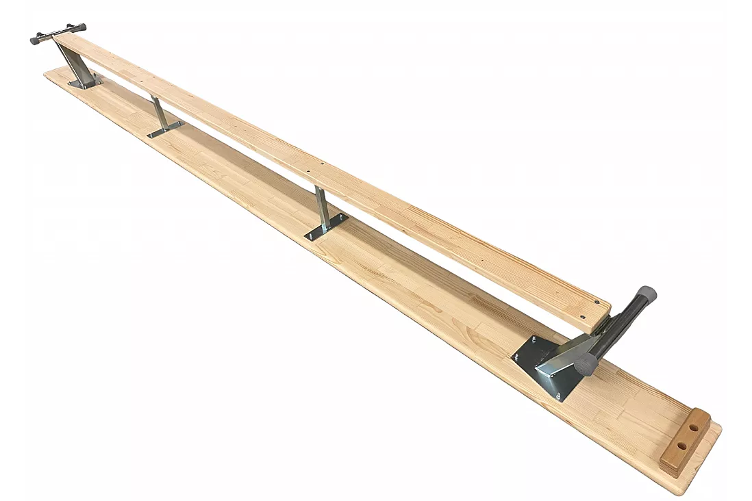 Bänk med balansplanka och upphäng som kan fästas i ribbstol/plint.