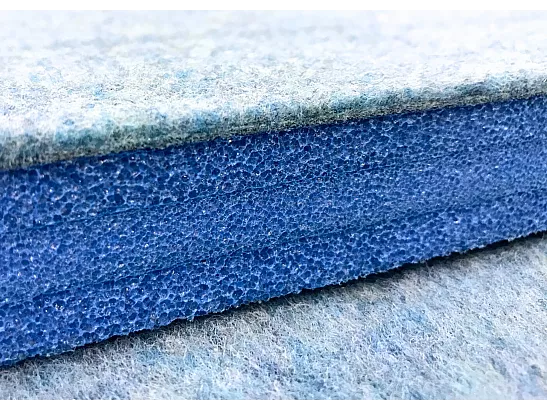 Golvet består av 8 st. Flexifiltmattor á 2x14 m