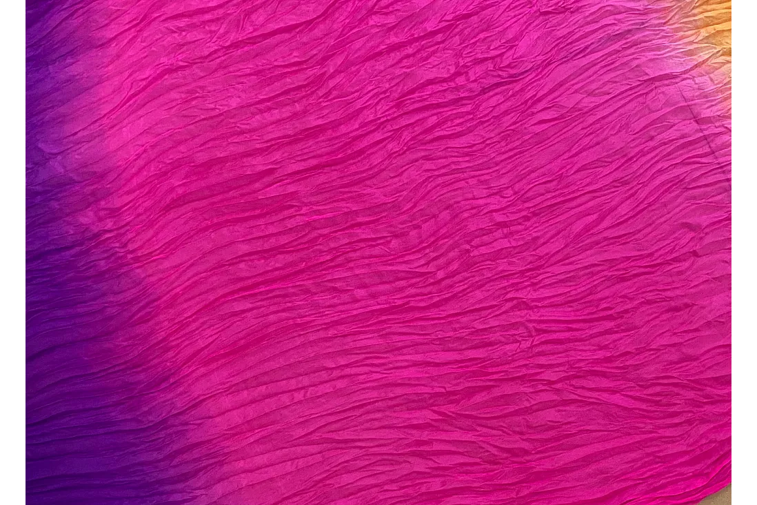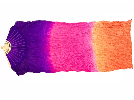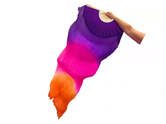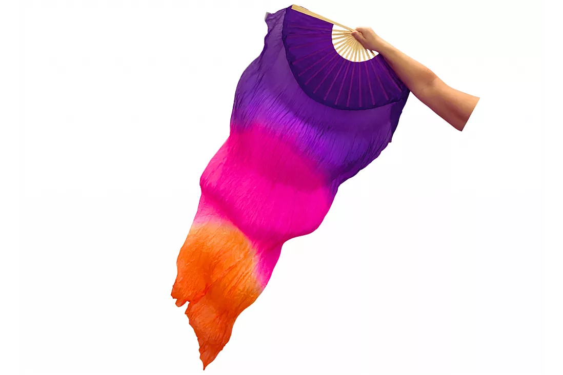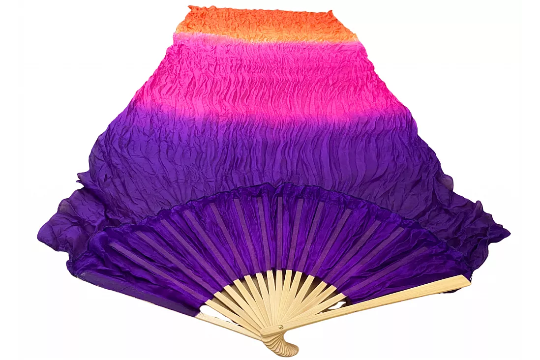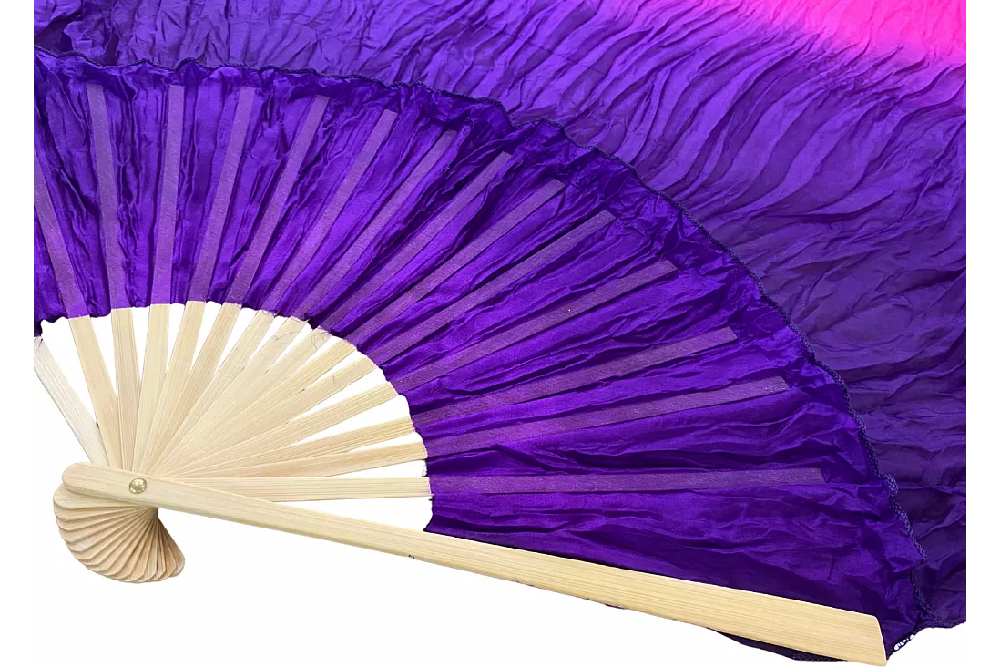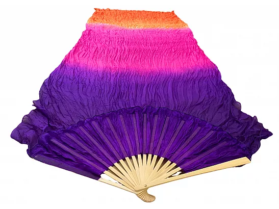 Vimpelsolfjädran är gjord av 170 x 80 cm lätt och flexibelt sidentyg, monterad på en 55 cm bred fläkt av bambuträ.