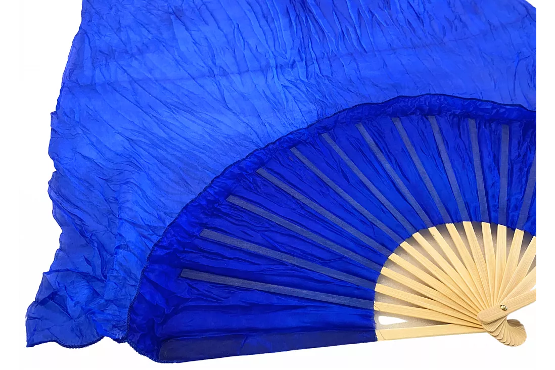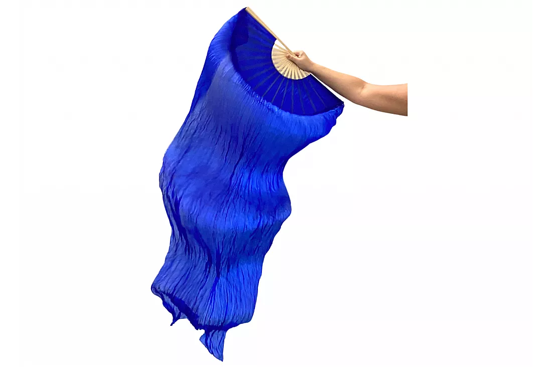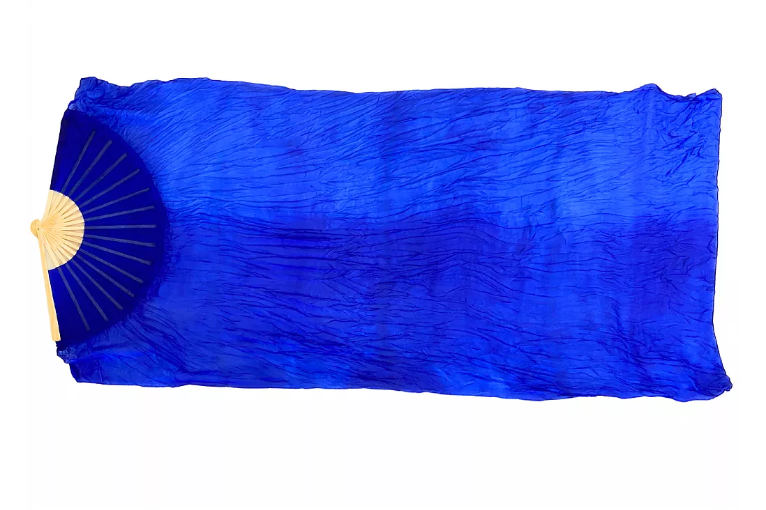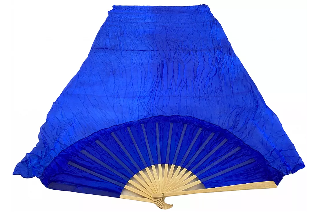 Vimpelsolfjädran är gjord av 170 x 80 cm lätt och flexibelt sidentyg, monterad på en 55 cm bred fläkt av bambuträ.