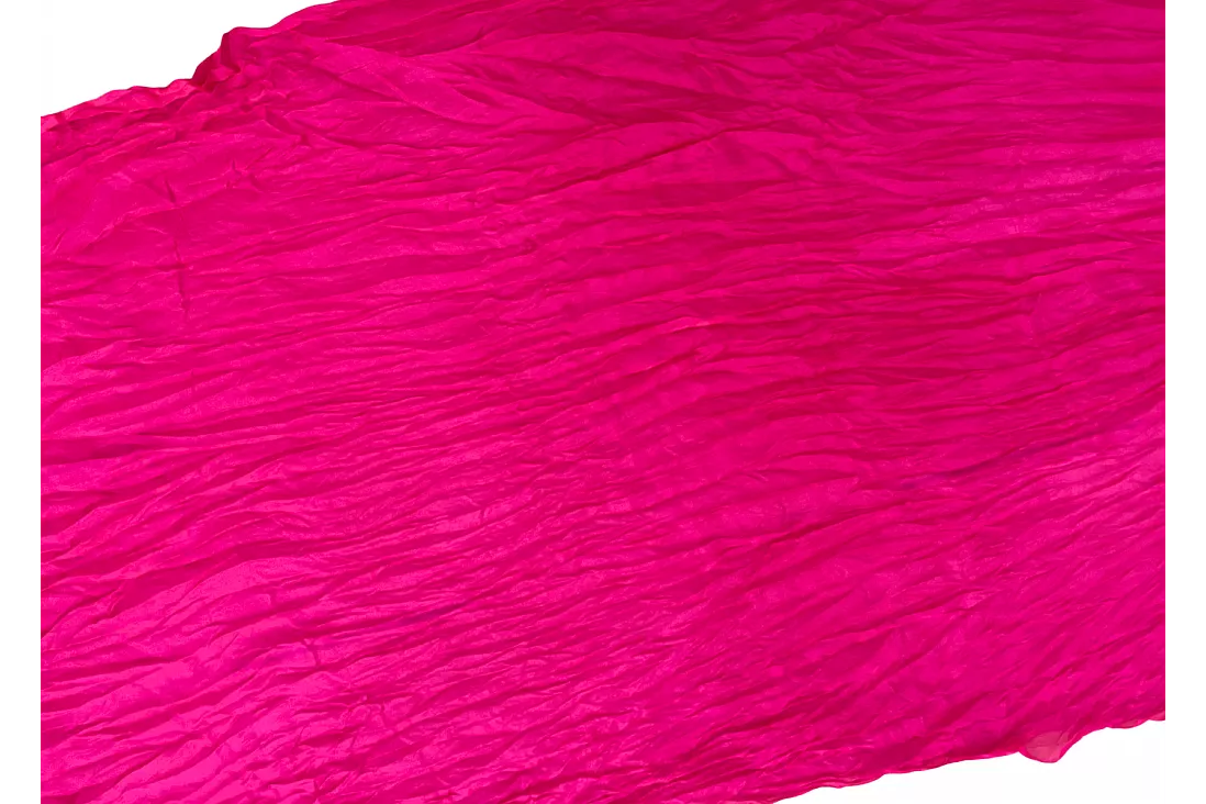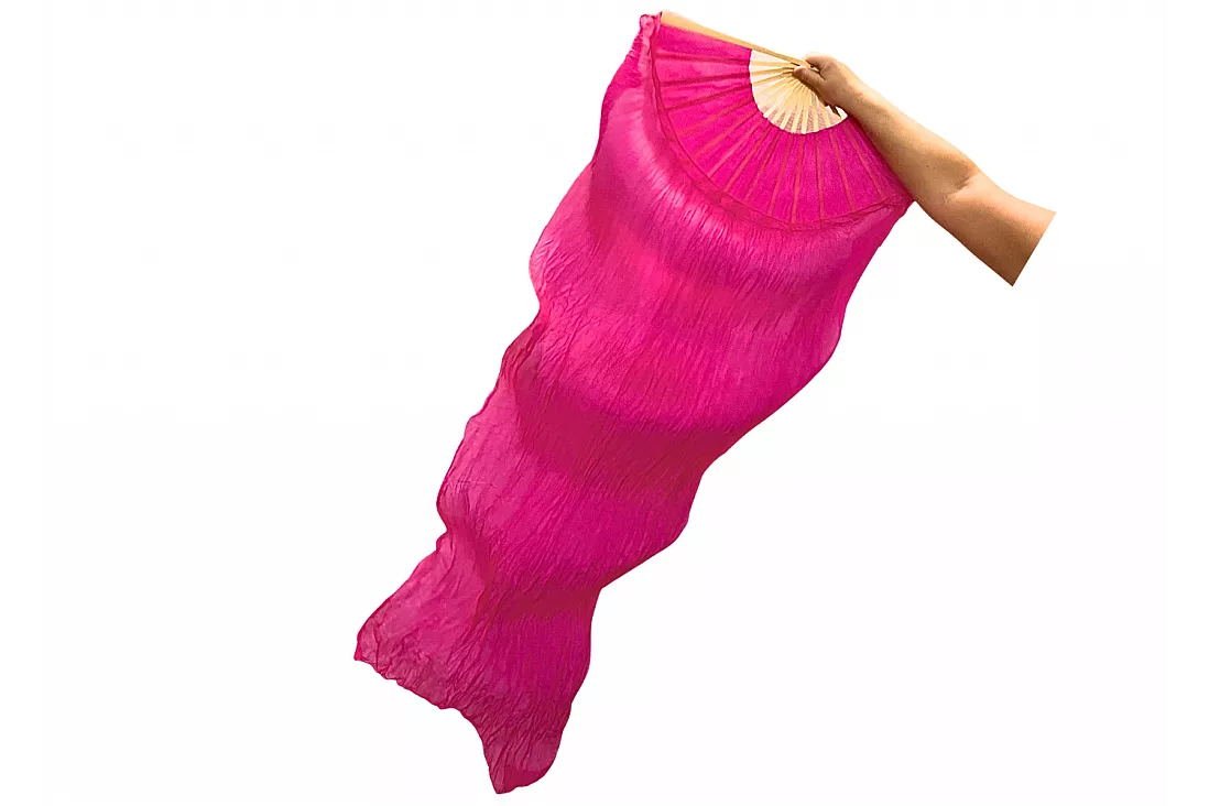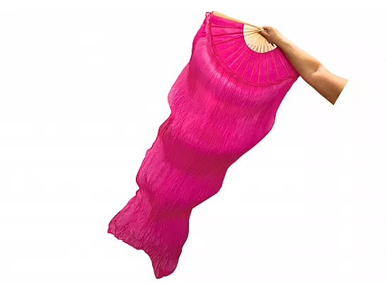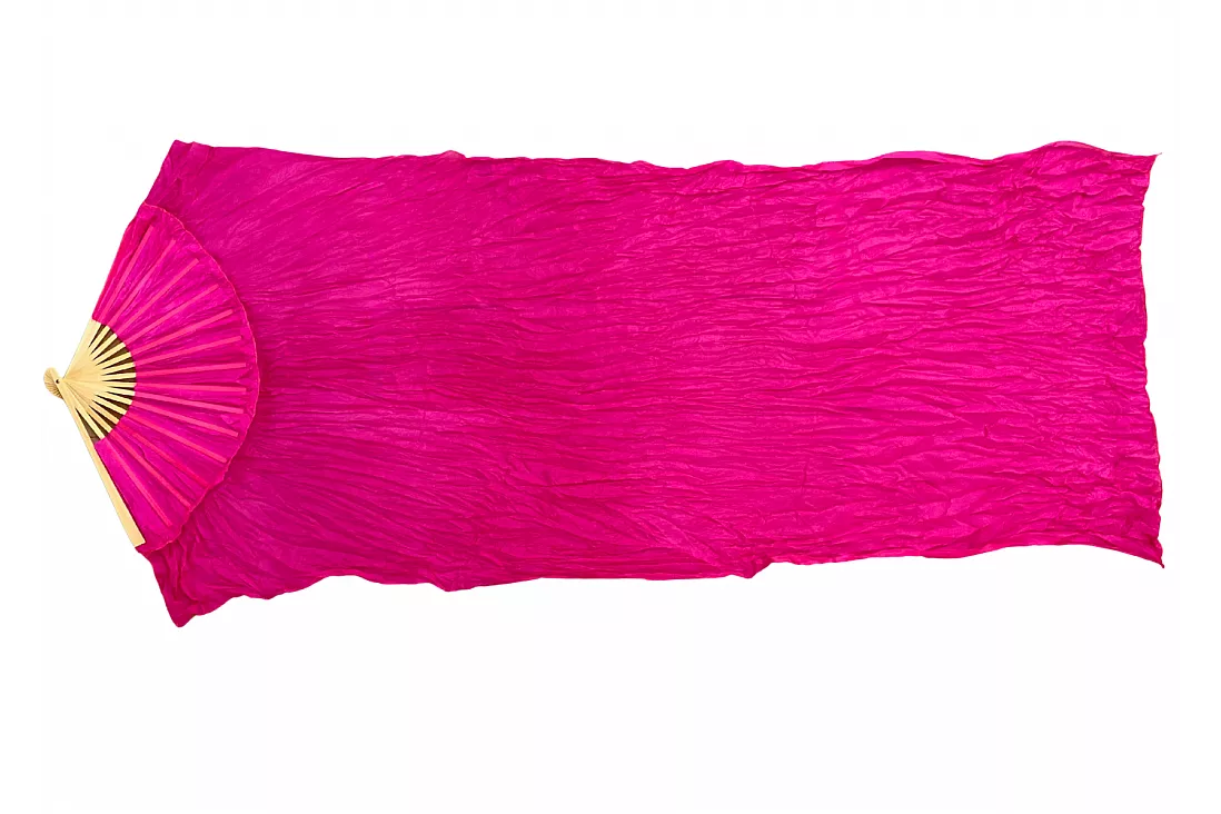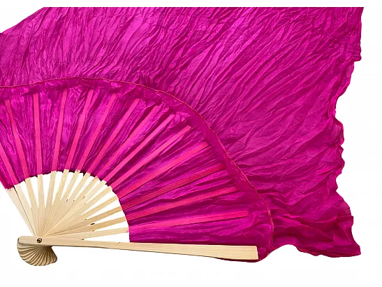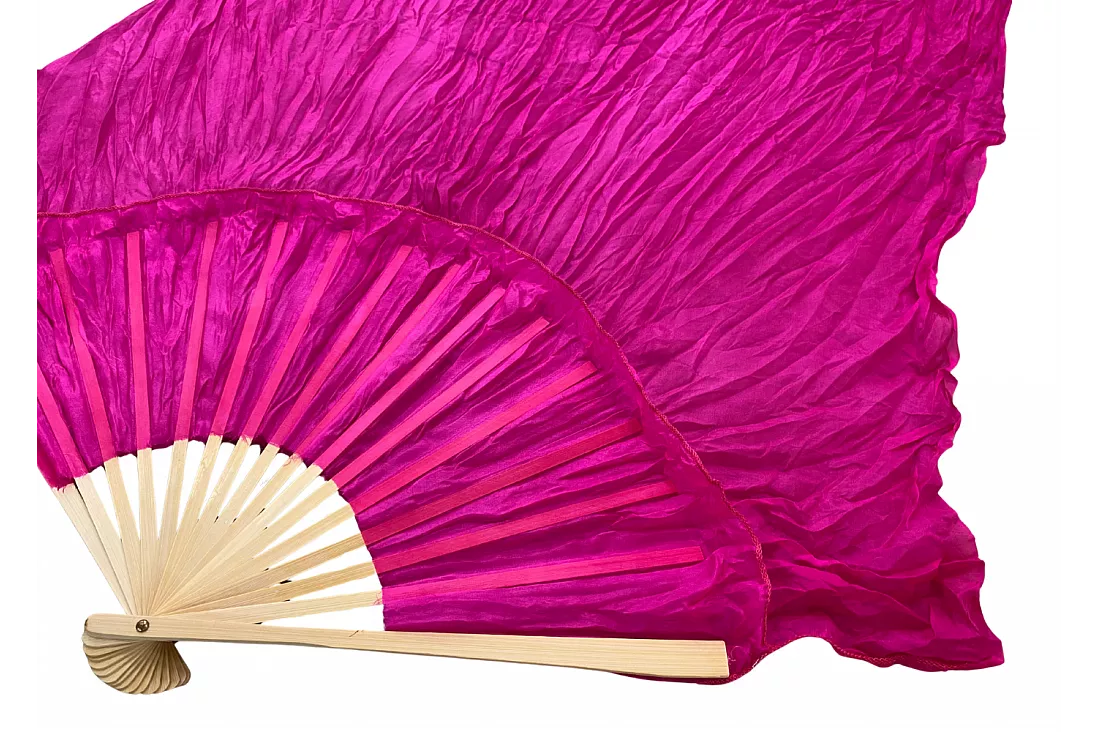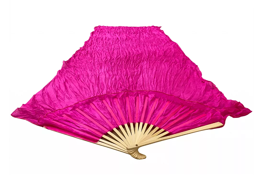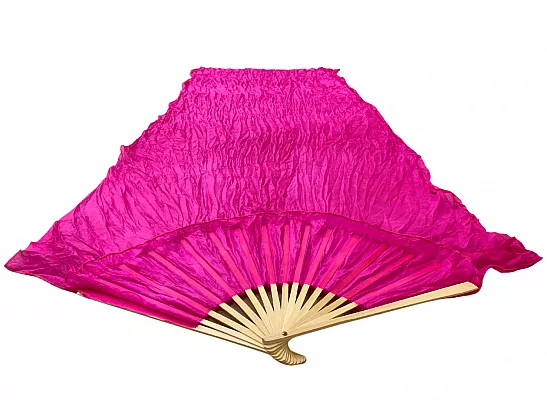 Vimpelsolfjädran är gjord av 170 x 80 cm lätt och flexibelt sidentyg, monterad på en 55 cm bred fläkt av bambuträ.