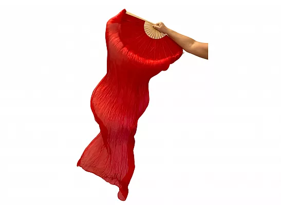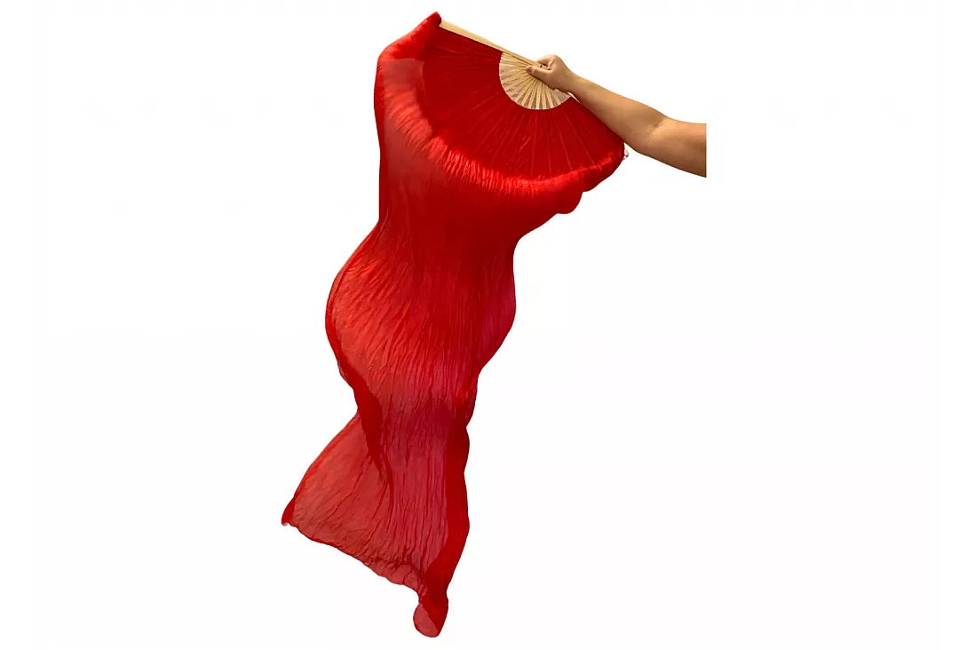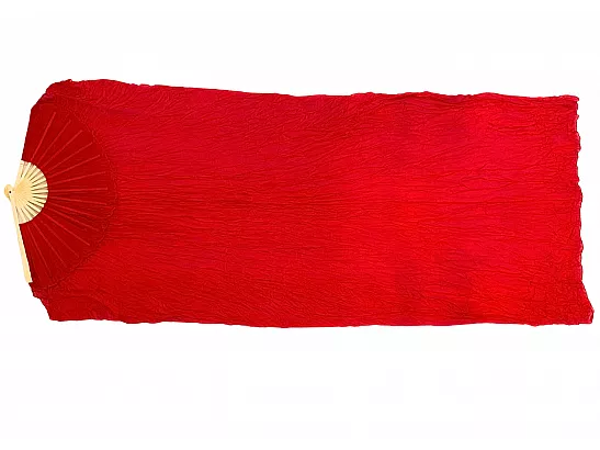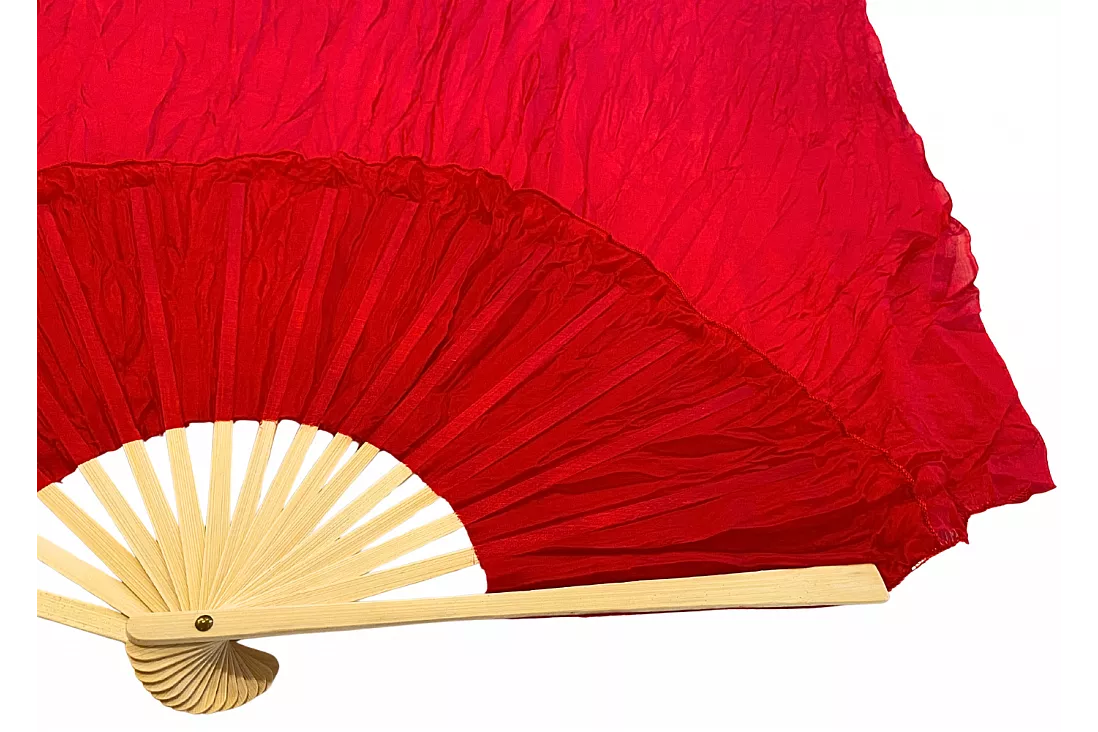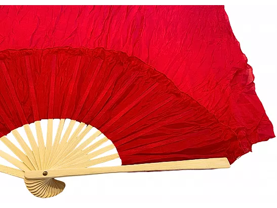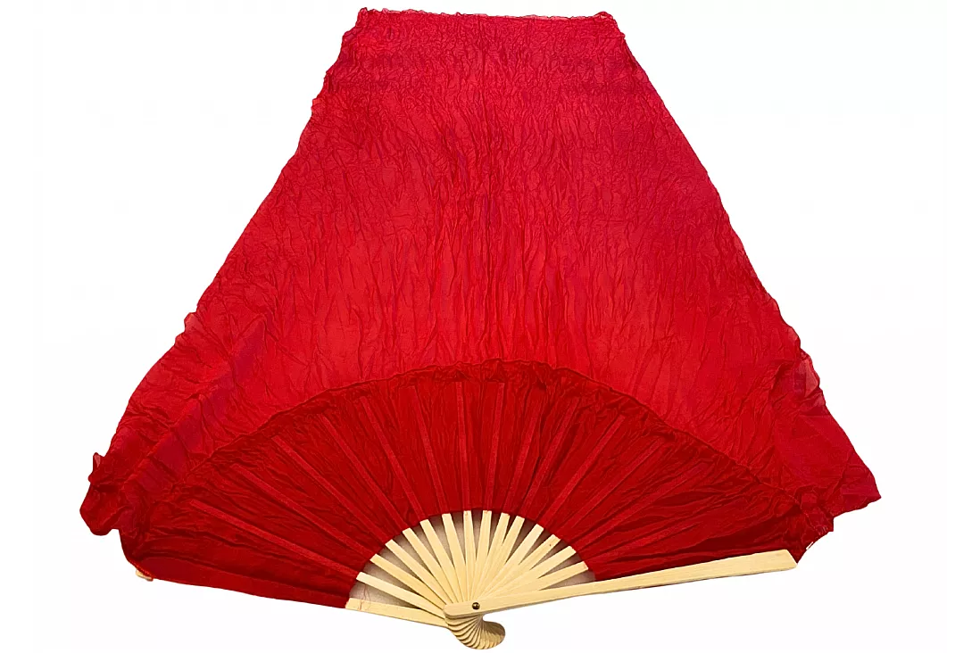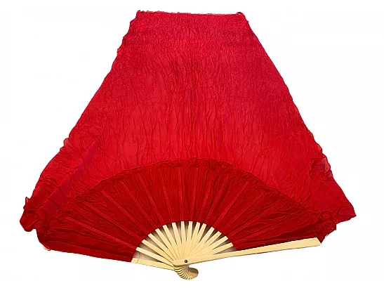Vimpelsolfjädran är gjord av 170 x 80 cm lätt och flexibelt sidentyg, monterad på en 55 cm bred fläkt av bambuträ.