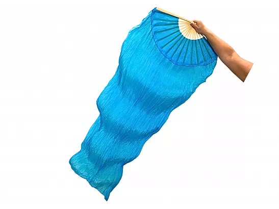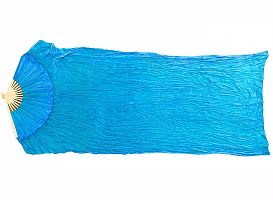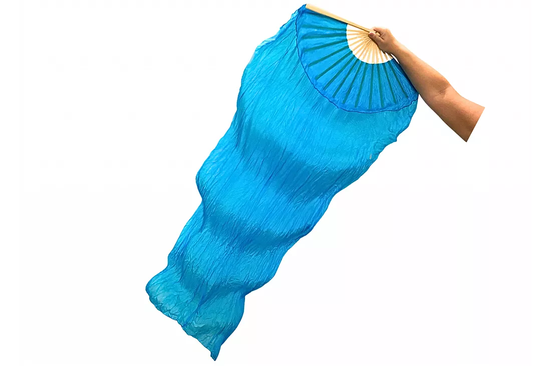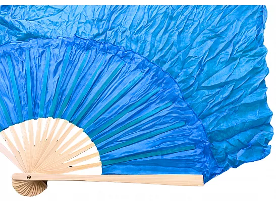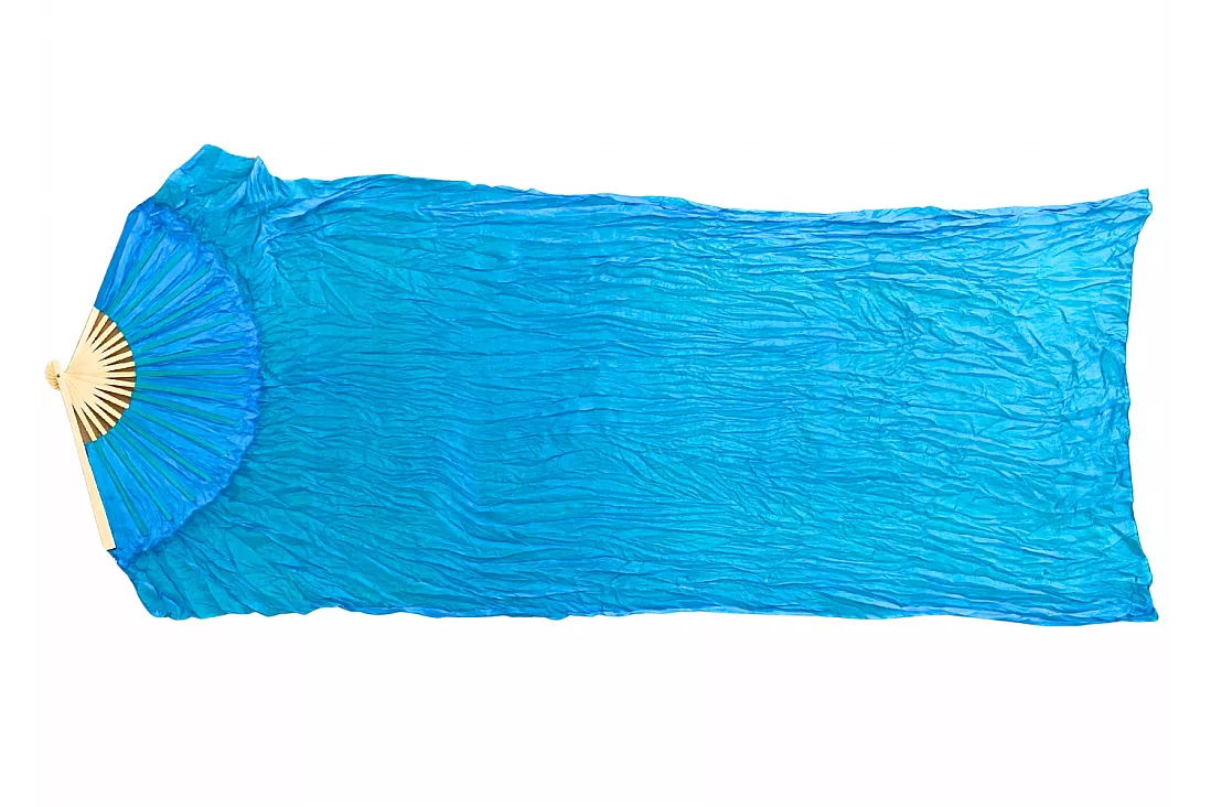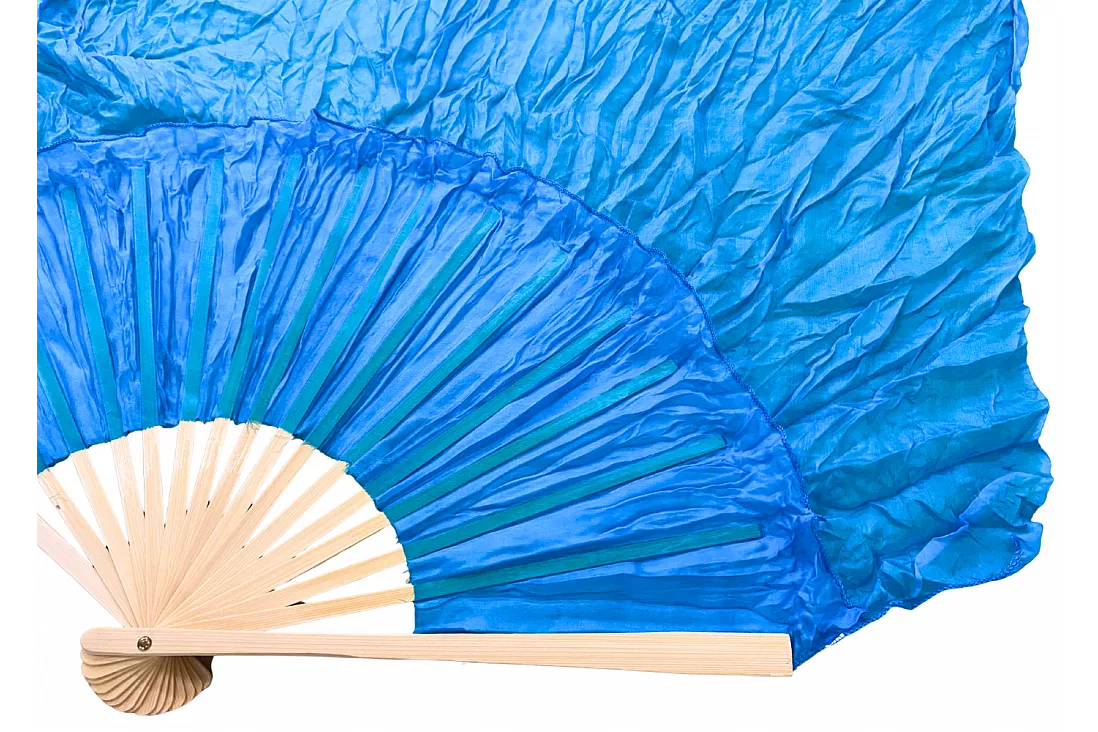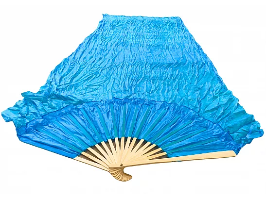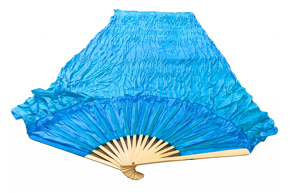 Vimpelsolfjädran är gjord av 170 x 80 cm lätt och flexibelt sidentyg, monterad på en 55 cm bred fläkt av bambuträ.
