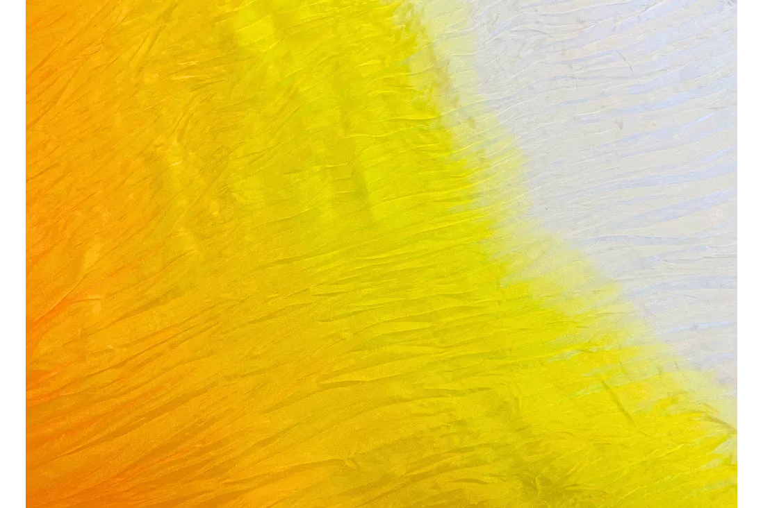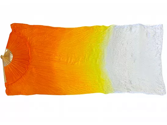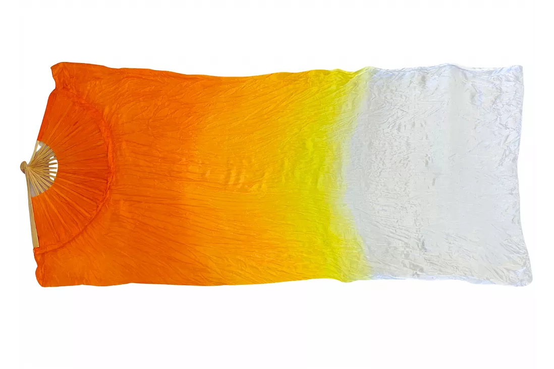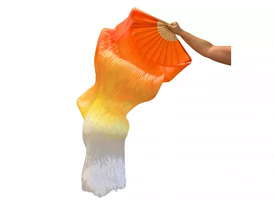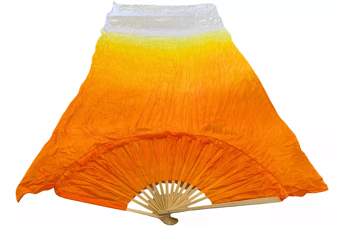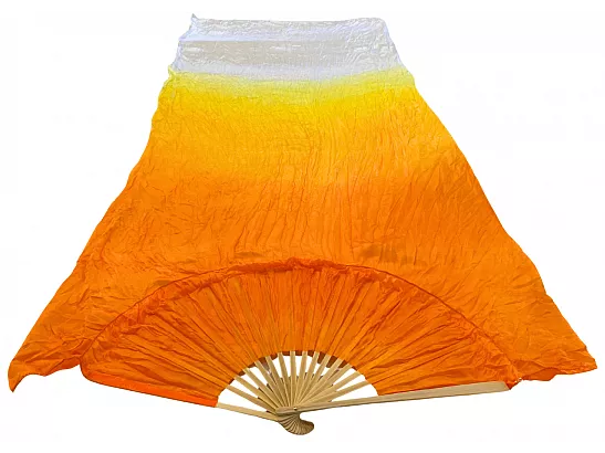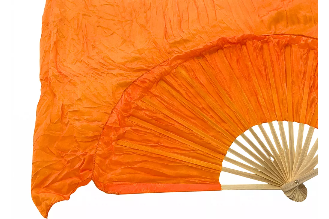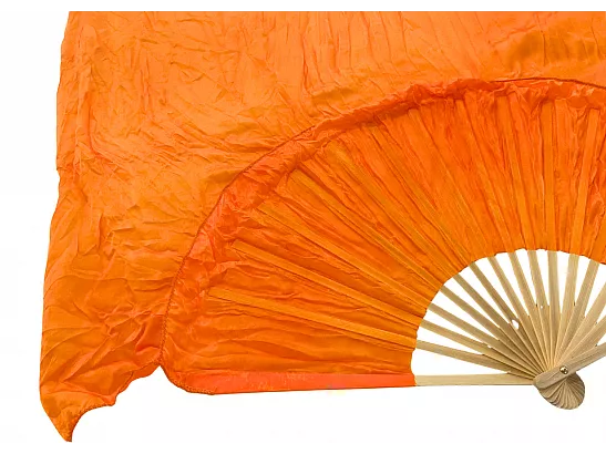 Vimpelsolfjädran är gjord av 170 x 80 cm lätt och flexibelt sidentyg, monterad på en 55 cm bred fläkt av bambuträ.