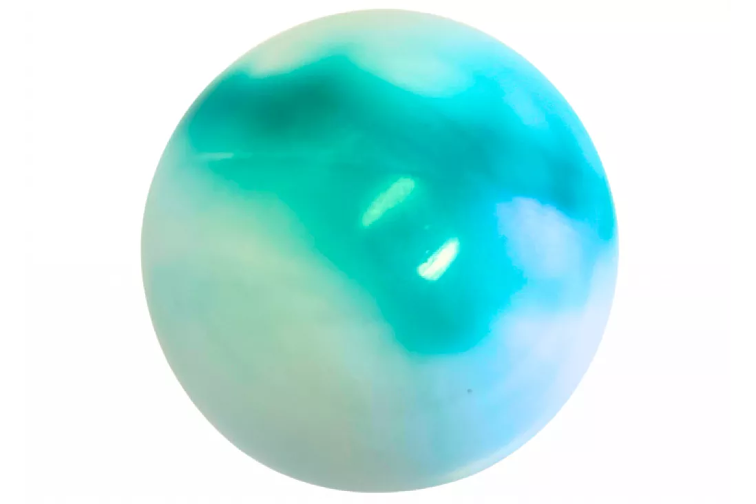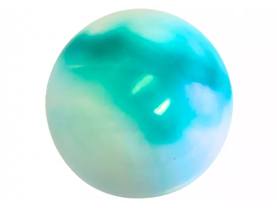 Färgerna på denna boll är marmorerad i mörkgröna och ljusgröna nyanser. Bollen har en fin blank yta.