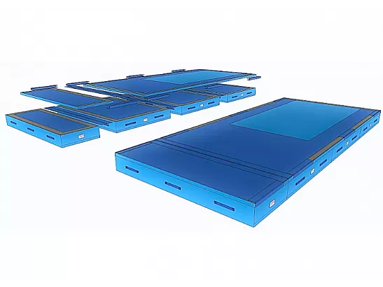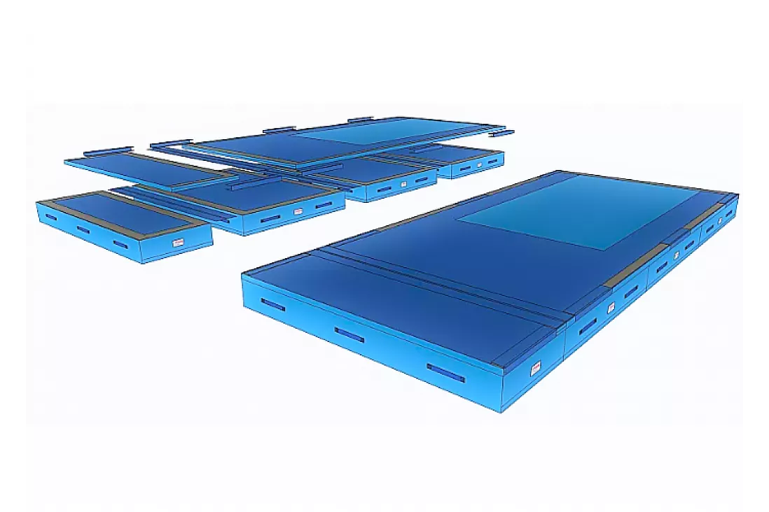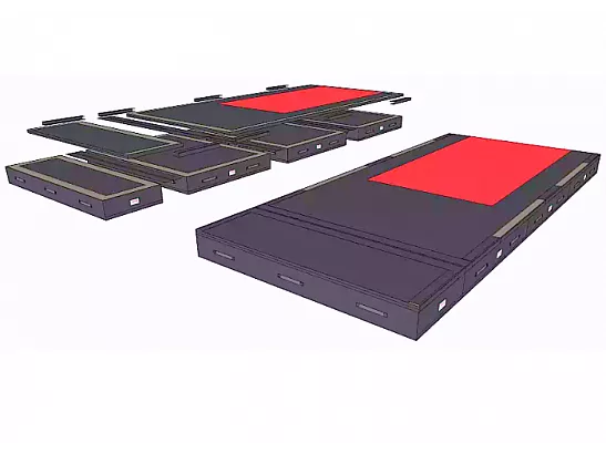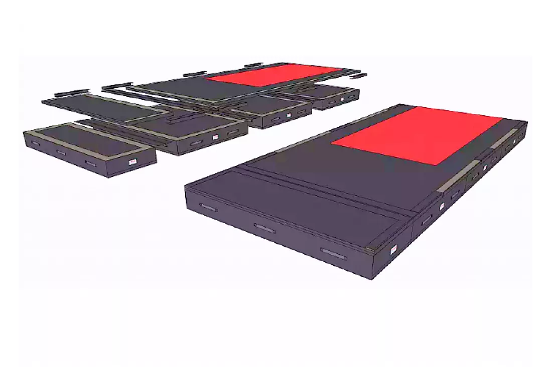 TEAMGYM Landningsmatta består av 3 st. nedslagsmattor samt 1 st. överläggningsmatta.