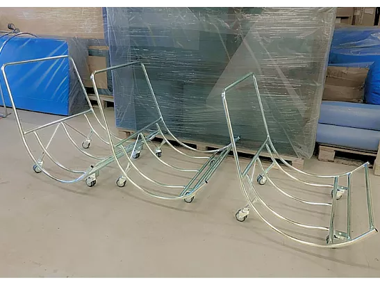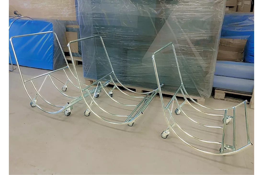 J-vagn till transport av lättviktsrullmattor, airtracks och airkilar.