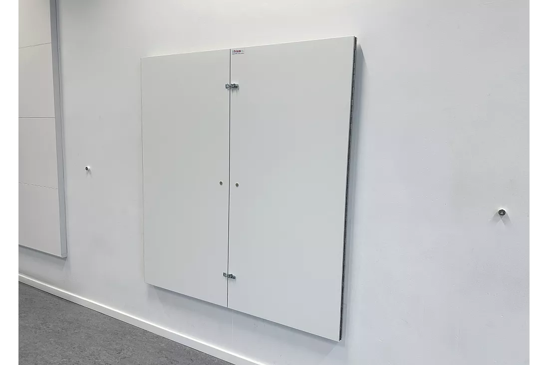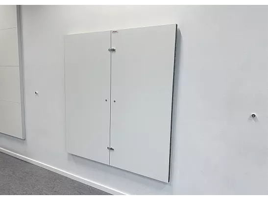 Låsbart spegelskåp för väggmontering. När spegelskåpet är låst är speglarna skyddade.