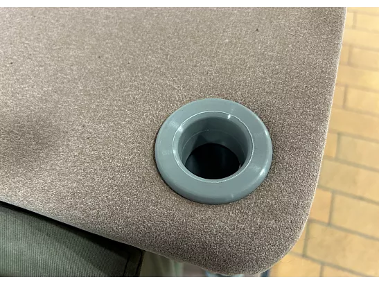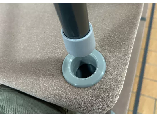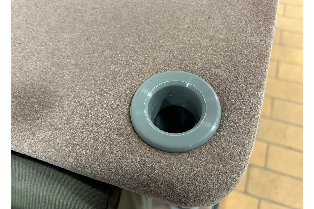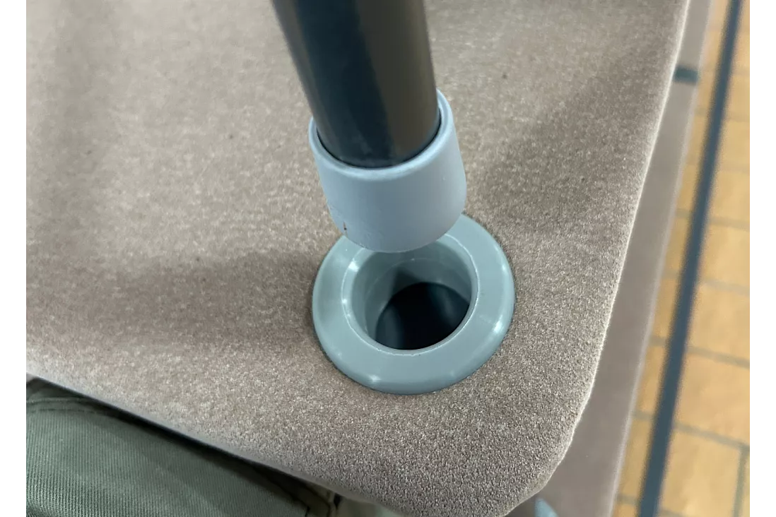 Toppen på stålplinten är beklädd med mocka med en fast skumkärna under.