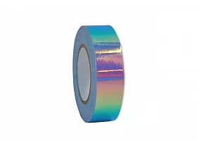 Färgrik tejp med en mycket blank yta. Tejpen verkar flerfärgad då omgivelserna speglar sig i den.